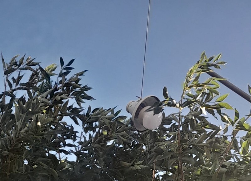 Se llevaron un foco de 604 entre 121 y 122 para recambiar. Los vecinos se quedaron perplejos y dudan que se traten de obreros de luminarias. El cabezal se encontraba sin funcionar y colgando de los cables hace meses.