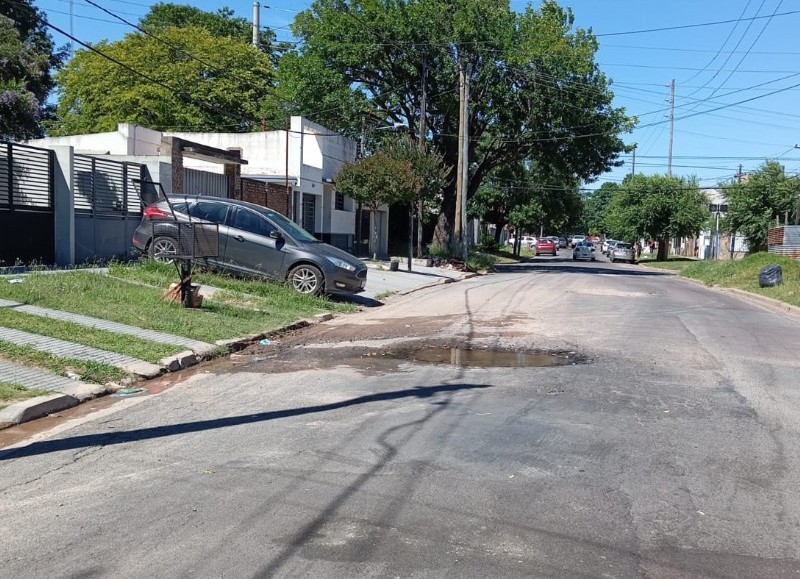 Los vecinos de Villa Elvira vienen denunciando desde hace mucho tiempo el pésimo estado que se encuentra un largo tramo de la calle 74. Esta vez, un enorme pozo provocado por una pérdida de agua cruza toda la calzada que se sigue desmoronando.