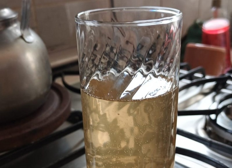 “En varias oportunidades salió el agua de ese color marrón (foto)” dijo y sostuvo “está hecha la denuncia en ABSA y no pasa nada”.