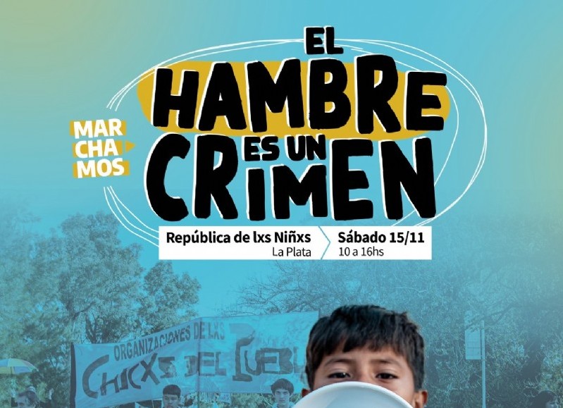 El sábado 15 de noviembre, las Organizaciones de “Lxs Chicxs del Pueblo” convocan a una marcha a realizarse en la República de los Niños, camino Gral. Belgrano y 501, con la consigna "El hambre es un crimen".