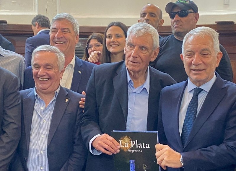 Rodeado de afectos, Le Moal se acercó el miércoles para recibir la mención honorífica que otorga el Concejo Deliberante platense y se encontró con la sorpresa de que el propio intendente platense, Julio Alak, se hizo presente expresamente para acompañarlo en este merecido homenaje.