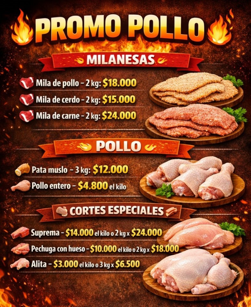 A todo esto, sumaron promos en lo que se refiere a milanesas, ofreciendo los dos kilos de milanesas a 18 mil pesos; milanesas de cerdo los dos kilos a 15 mil y las milas de carne los dos kilos 24 mil.
