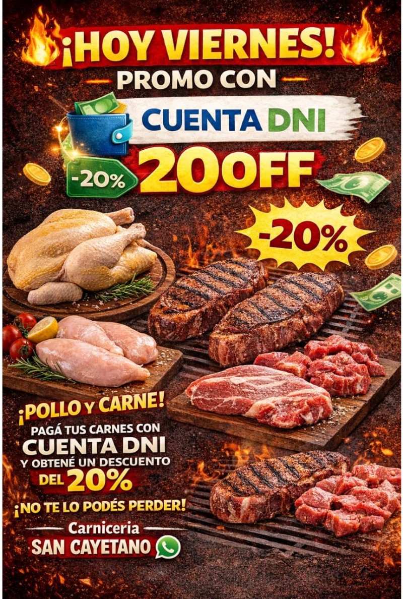 Para este viernes no te olvides que tenés el descuento del 20% en cuenta DNI y varias promociones que te acerca “Carnicería La Linda” de 7 entre 76 y 77.
