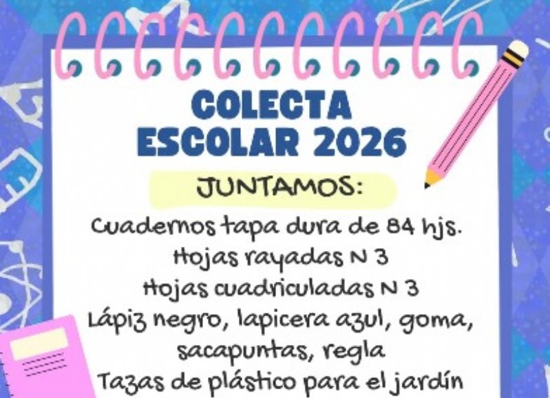 En este caso, están abocados a recaudar cuadernos de tapa dura de 84 hojas, lisas o rayadas; hojas rayadas Nº3; Hojas cudriculadas Nº 3; lápices negros; lapiceras de color azul; gomas; sacapuntas; reglas; tazas de plástico para los niños de Jardín.