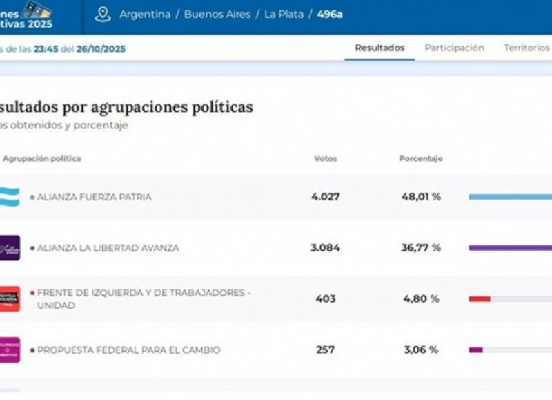 La Libertad Avanza ganó en la ciudad de La Plata con un margen de seis puntos a favor del candidato Diego Santilli. En Villa Elvira los violetas ganaron en la zona del casco y el peronismo se impuso en el resto de la localidad.