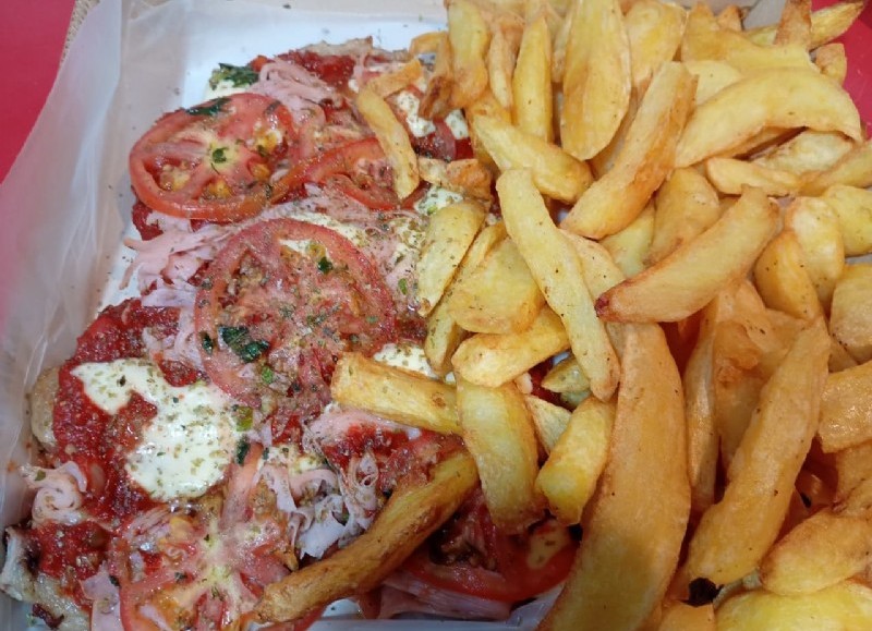 * Sánguche de pollo XXL + fritas — $13.900