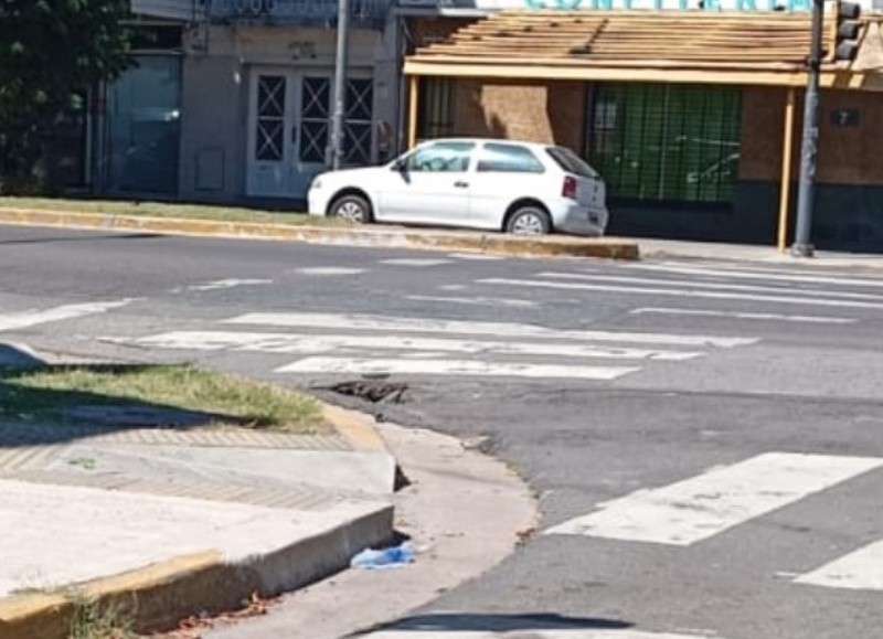 Con el paso de los meses, una pequeña hendidura se produjo junto a la rampa de discapacitados, junto a la cinta que demarca el paso peatonal del lado de la Comisaría 8va y se sigue agrandando con el paso de los días.