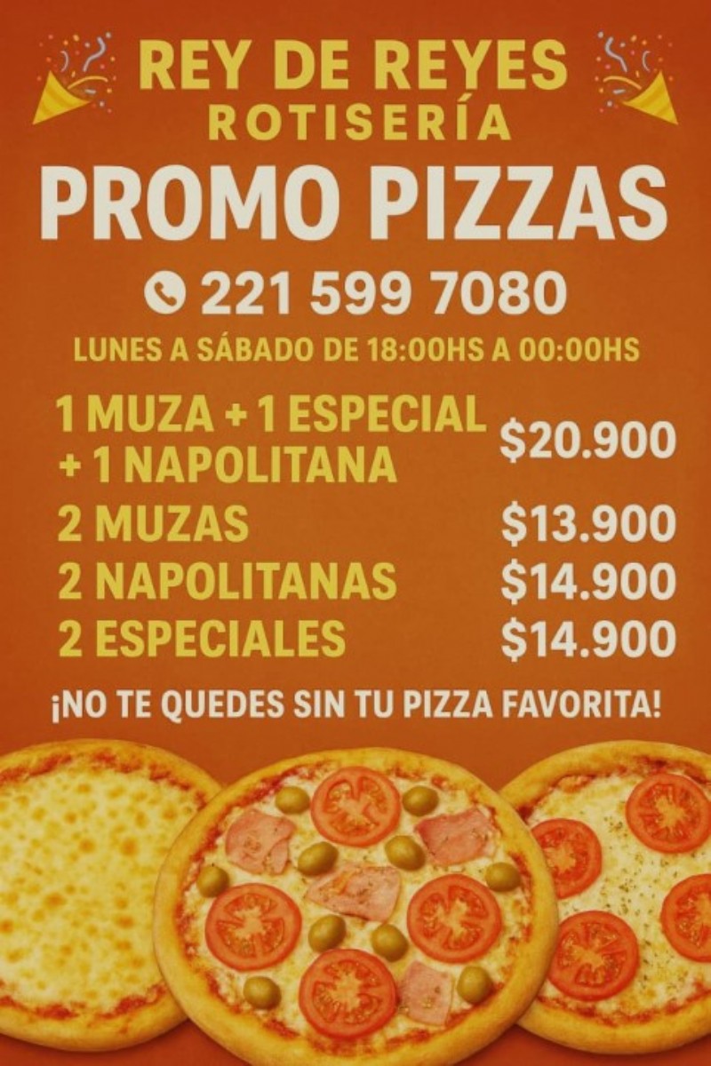 De lunes a jueves, de 18 y hasta la medianoche, la Rotisería de Comidas Rey de Reyes tiene preparada la cocina para que hagas tus pedidos de comidas. Incorporaron bebidas, helados y cigarrillos.
